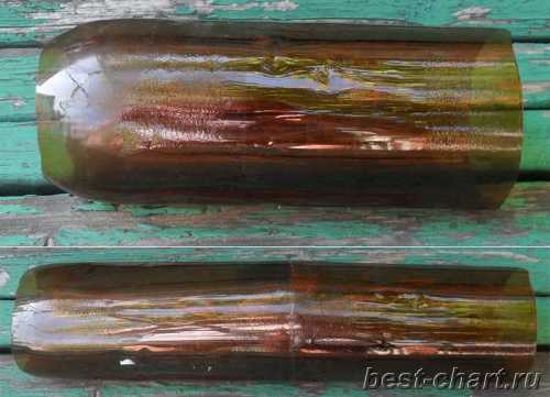 Точно так же подрезаются своими руками и другие элементы стояков. То есть, нижняя донная часть срезается, а верхняя, где расположено горлышко, оставляется под небольшим конусом. Необходим этот конус только для того, чтобы получить соединение внахлест относительно вставляемых друг в друга элементов.
