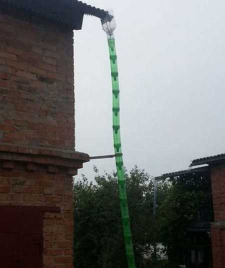 Зачастую наличие водостока связано не только со сбором дождевой воды на приусадебных участках и дачах, а еще и с безопасностью человека. Ведь подтаявшая снежная масса в один миг может рухнуть на голову, а последствия будут весьма неприятными, если не плачевными. Поэтому, когда средств на добротную пластиковую или металлическую конструкцию пока нет, подойдет и «самоделка» из пластиковой тары, а за тот год, который она вам гарантированно прослужит, можно изыскать средства для установки новой системы.