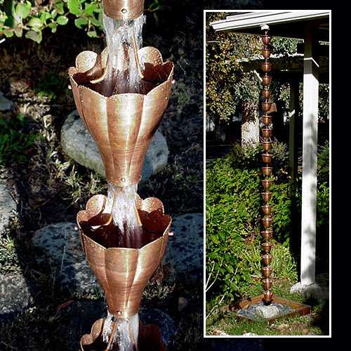 Во время дождя вода с приятным журчанием стекает по цепи, а то, что звук стекающей воды расслабляет – это общеизвестный факт.