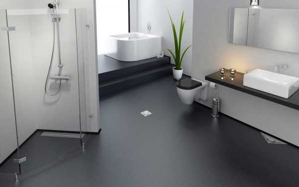 Однако и в жилых помещениях жидкие полы стали частыми гостями. Они позволяют создать ровное и надежное основание, не боящееся воды, в любой комнате дома или квартиры. Наиболее часто такой вариант покрытия обустраивается в ванной комнате или санузле, на кухне – то есть там, где высоки показатели влажности, постоянные перемены температур, из-за чего другие виды покрытий (за исключением керамики) долго не выдерживают и разрушаются.