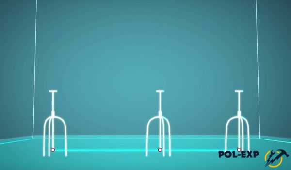 - Затем следует выставить маячки, для этого обычно применяют металлический профиль, выставляя его по уровню и закрепив на поверхности стяжки цементом.
