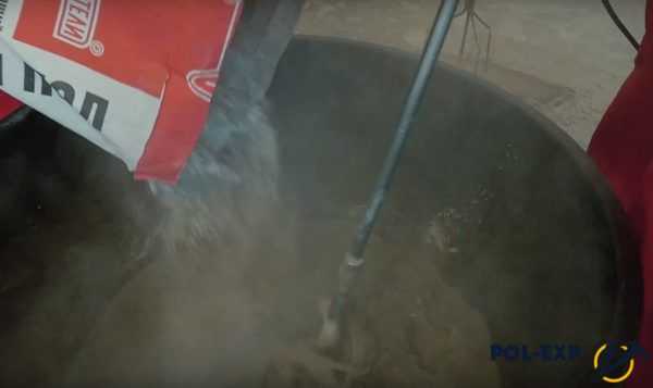 5 Этап. Подготавливаем раствор. Изучаем инструкцию, она расположена на мешках с материалом. В приготовленную тару заливаем воду в пропорции 1/3 л на 1 кг смеси. Миксером взбиваем холодную воду и при этом засыпаем тонкой струйкой сухую смесь. Все должно быть однородным и без комков. Помните, что использовать готовый продукт необходимо не позднее 20 мин, потом она становится непригодной для работы.