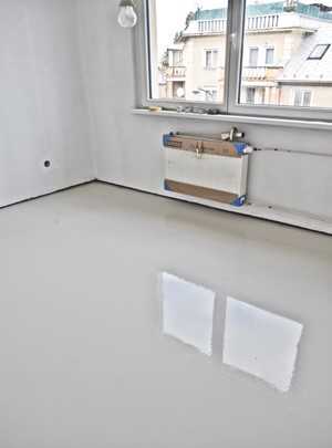 - После чего важно проверить «черновой» пол на предмет трещин и выбоин и при необходимости замазать их цементным раствором.