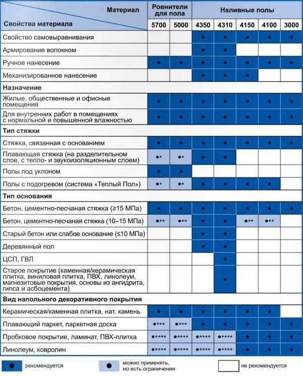 Характеристики и рекомендации по использованию различных материалов для выравнивания и организации стяжки пола