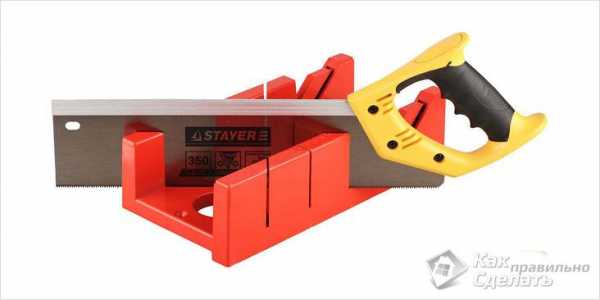 Если углы и стены в помещении ровные, можно использовать специальный столярный инструмент — стусло. Это желоб в виде перевернутой буквы «П», в котором намечены линии для пропила под углом 90° и 45°. Внутрь укладывается деталь, в которой нужно сделать запил, в направляющие вставляется пила. Деталь удерживается на месте, отрезается под требуемым углом.