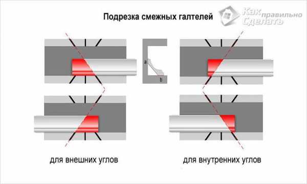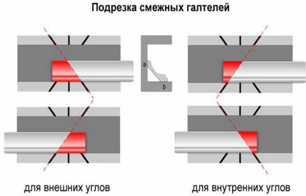 Как правильно отрезать потолочный плинтус Потолочные углы можно разделить на внутренние и наружные, способ стыковки на них немного отличается.