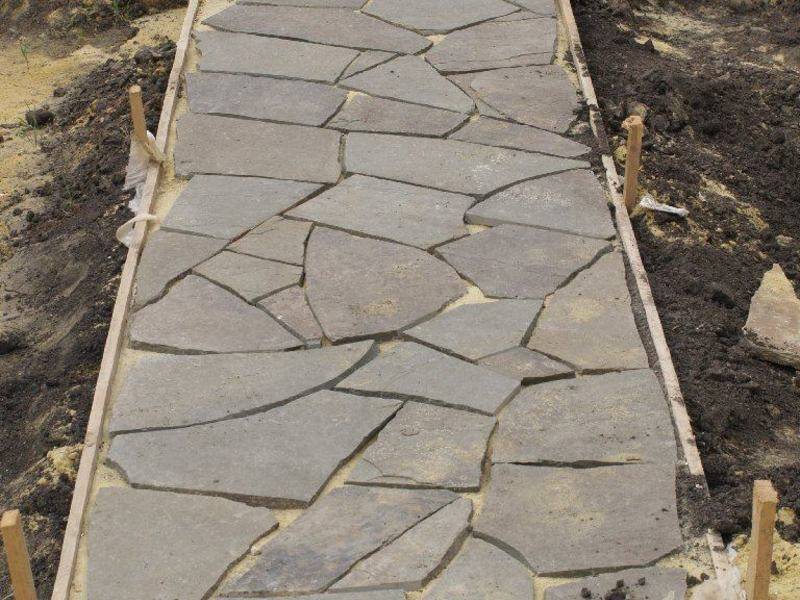 - В этом разделе будут предложены несколько вариантов укладки плитняка. Из общих этапов мощения можно отметить следующие шаги: