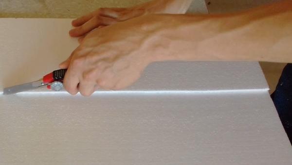 - Лезвие ножа должно проникать в обработанную поверхность (например, видимую сторону, когда потолочная плитка уложена на потолок) в первую очередь, а необработанную сторону в последнюю очередь, чтобы любые шероховатости или оторванные части были скрыты от глаз.