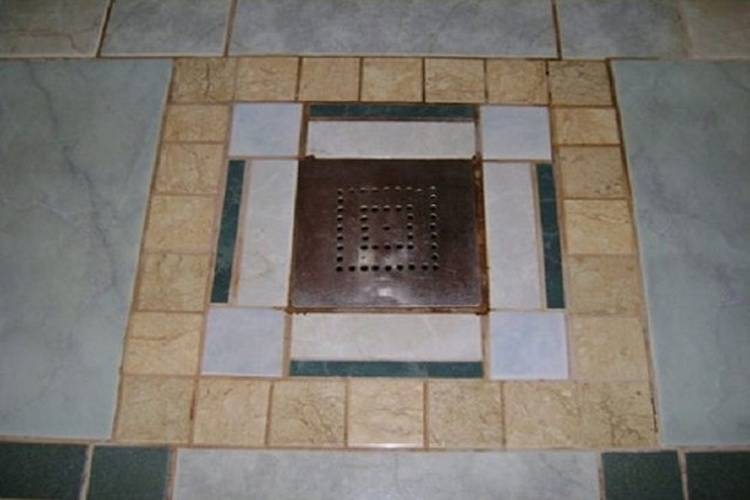 Если слив в бане находится в середине помещения, то укладку пола кафелем начинают с центральной части (с места слива). При этом формируется необходимый уклон отделки. Вначале производится раскладка плитки без клея для более точного замера нужного уклона.
