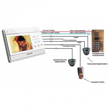 - В качестве дополнительных устройств безопасности могут использоваться видеосистемы, которые включают в свой состав наружную видеокамеру, устанавливаемую возле панели вызова и монитор, который может входить в один модуль с домофонной трубкой или использоваться в качестве отдельного устройства.