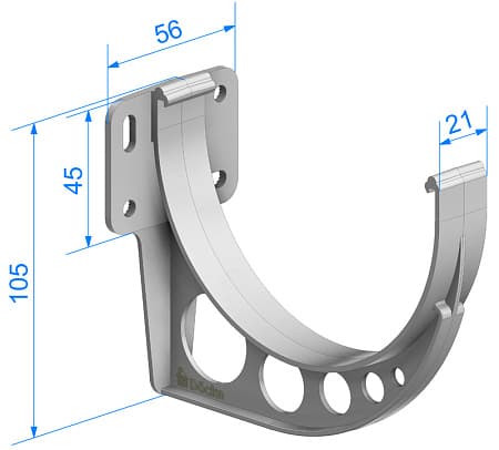 Кронштейн изготавливается оцинкованным с использованием таких материалов как полимерное соединение или сплав из стали. Цвет может быть стандартным и соответствовать цвету желоба или любым другим, который предпочтет владелец дома.