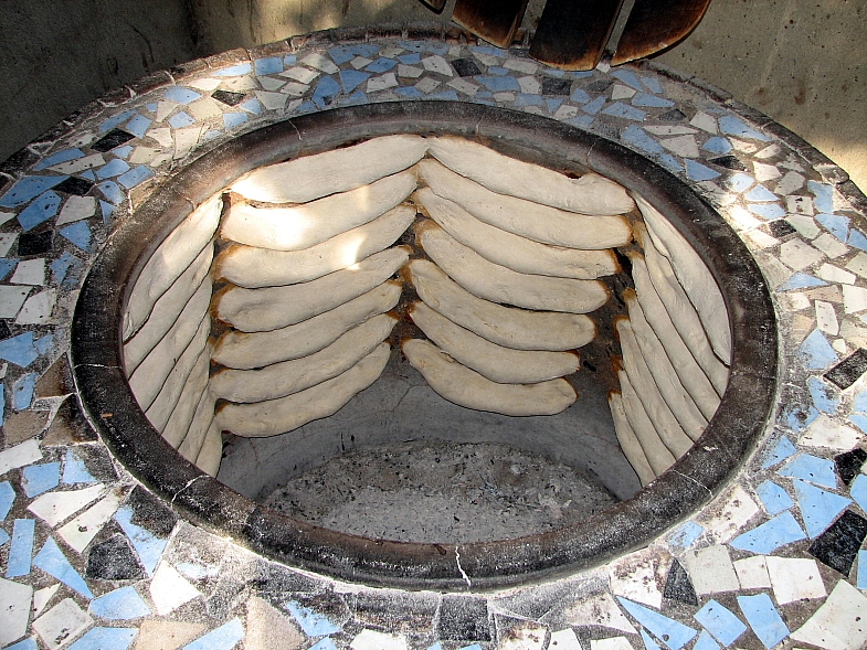 В восточной печи-жаровне можно приготовить любое блюдо, самса и лаваши крепятся к раскаленным стенкам, а шашлык и рёбрышки подвешиваются вертикально, благодаря чему, по кусочкам мяса стекает жир, делая их сочными и мягкими. При этом, он не попадает на раскаленные угли, поэтому продукты не сгорают, а покрываются тонкой румяной корочкой. Можно приобрести готовый керамический тандыр, подготовить на участке прочную, ровную площадку и начинать приготовления, но гораздо приятнее изготовить печь своими руками.
