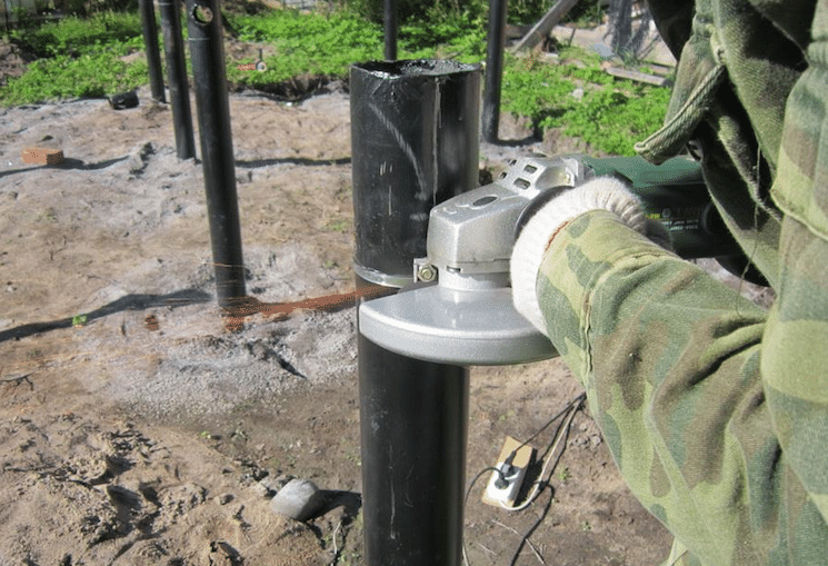 После того, как метод монтажа винтовых свай был выбран, а конструкции установлены, наступает этап их дальнейшей подготовки к использованию в качестве фундамента. Первое, что необходимо сделать – проверить вертикальность расположения опор и сделать на них отметки для обрезки по нужной высоте. Обычно срезается верхняя часть изделия с технологическими отверстиями – не менее 15 см.